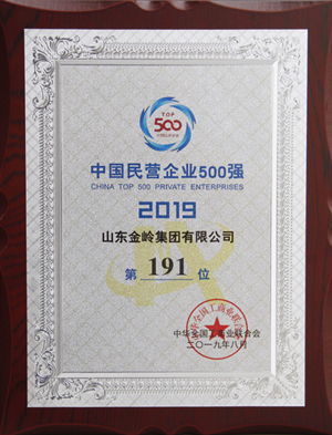 2019年8月22日,由全国工商联、青海省人民政府共同主办的“2019中国民营企业500强峰会”在青海西宁举行。会议发布了2019中国民营企业500强系列榜单,公司入榜“2019中国民营企业500强”,位列第191位,同时入榜“2019中国民营企业制造业500强”,位列第110位。