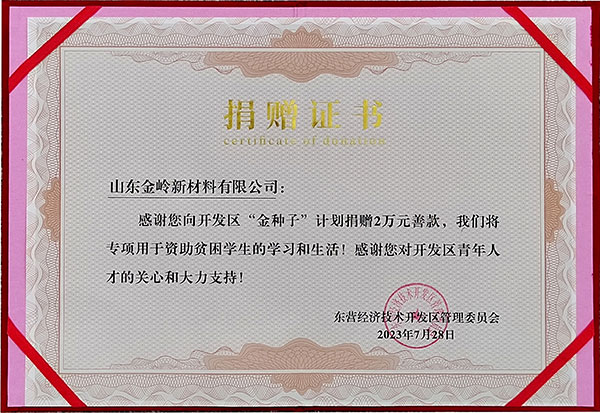 2023年7月28日,东营青年人才“背包E栈”启动仪式暨悦来湖人才街区开街活动在开发区悦来湖人才街区举行,山东长运娱乐新材料有限公司作为“金种子”赞助单位为活动赞助资金两万元,东营经济技术开发区党工委书记、管委会主任康茂礼为公司颁发荣誉证书,并对公司在开发区人力资源和社会保障方面做出的贡献给予充分肯定。