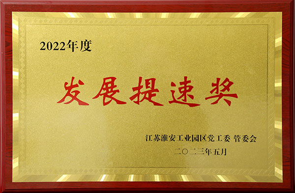 2023年5月10日,在淮安工业园区管委会举办的高质量发展总结动员大会暨“冲刺双过半”经济运行调度会上,江苏富强新材料有限公司被授予“2022年度发展提速奖”,以表彰公司对当地经济发展做出的突出贡献。