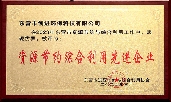 东营市创进环保科技有限公司被评为“资源节约综合利用先进企业”