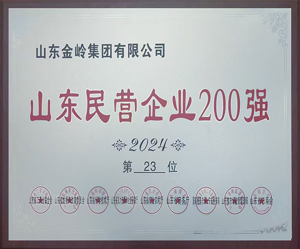 2024年7月,2024山东民营企业百强系列榜单发布会在滨州召开,山东省工商业联合会、山东省发展和改革委员会、山东省科学技术厅等8个单位联合授予我公司“2024山东民营企业200强”“2024山东民营企业吸纳就业100强”两项荣誉称号。